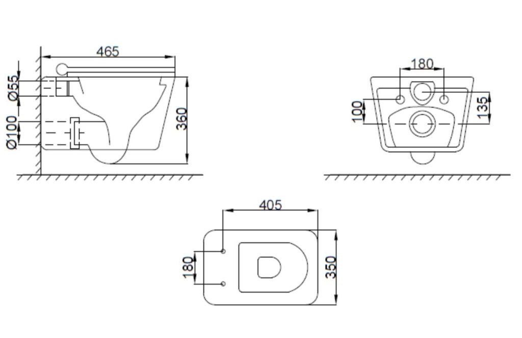 Pro montáž závěsného WC s připojovací roztečí 180 mm nebo 230 mm