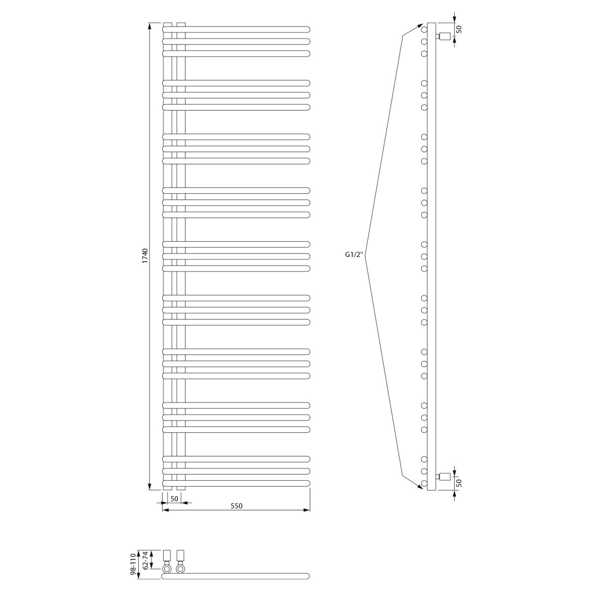 Klasické trubky s kruhovým profilem sestavené v designový radiátor, který lze díky středovému připojení s roztečí 50 mm kombinovat s ventily z naší nabídky.