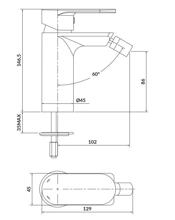Stojánková bidetová baterie CREA v černém provedení s provzdušňovačem vody Cersanit Water Save je dodávána včetně flexibilních hadiček o délce 45 cm.