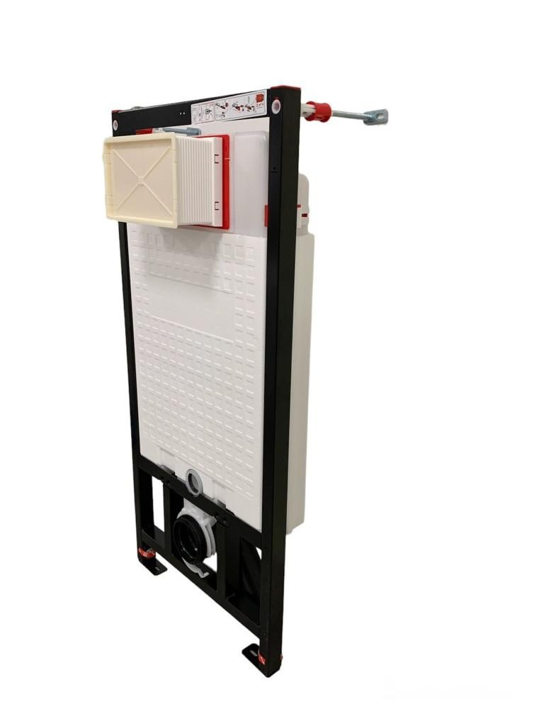 Podomítkový rám je určen k zavěšení WC mís. Je vybaven systémem dvojitého splachování a dodatečným zvukotěsným těsněním. Celek je stabilizován odolným ocelovým rámem.
