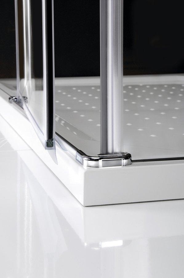 Síla bezpečnostních skel je 8 mm v pevných částech a 6 mm v otočných částech. Výška zástěn je 1 900 mm.