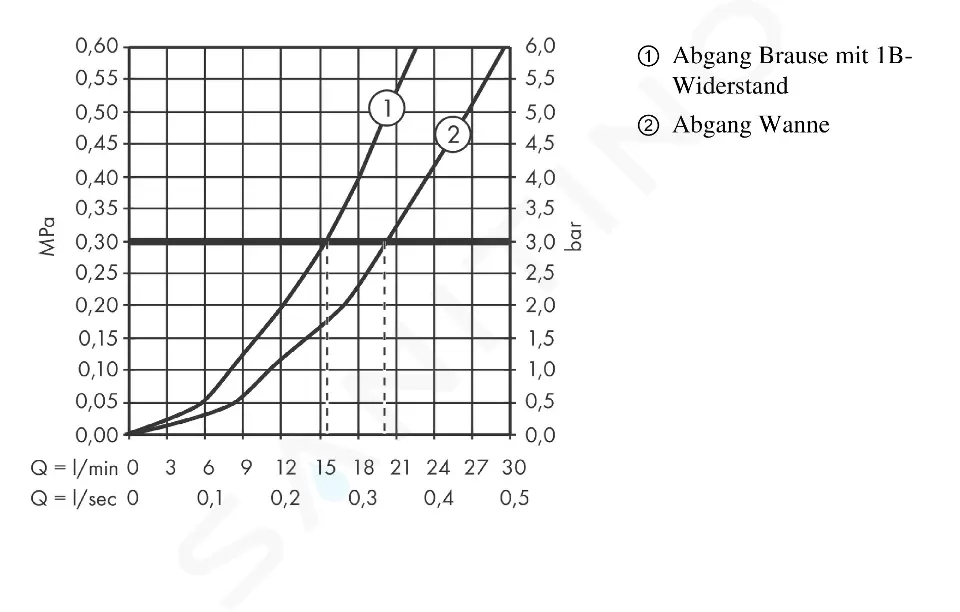 - průtok vanovým výtokem (při 0,3 MPa): 23 l/min