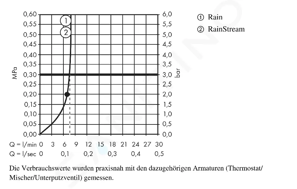 - průtokové množství proudu RainStream (při 0,3 MPa): 9 l/min