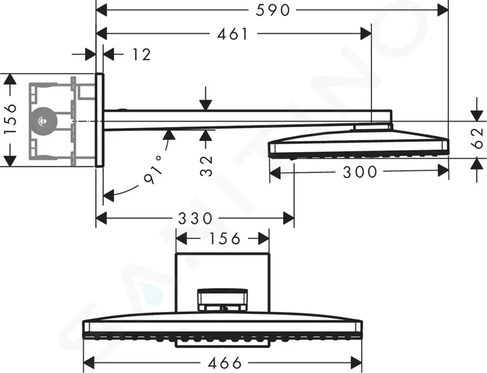 - délka ramena sprchy: 461 mm