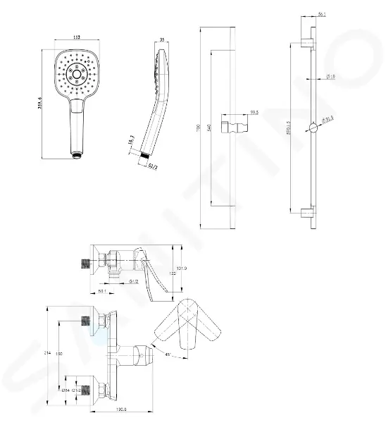 kielle Sprchový set s baterií, tyčí, hadicí a sprchovou hlavicí, chrom 20627SN80