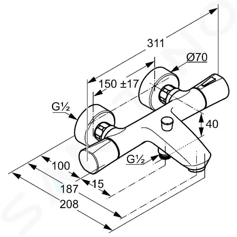 - rukojeť pro ovládání teploty s bezpečnostní zarážkou na 38 °C