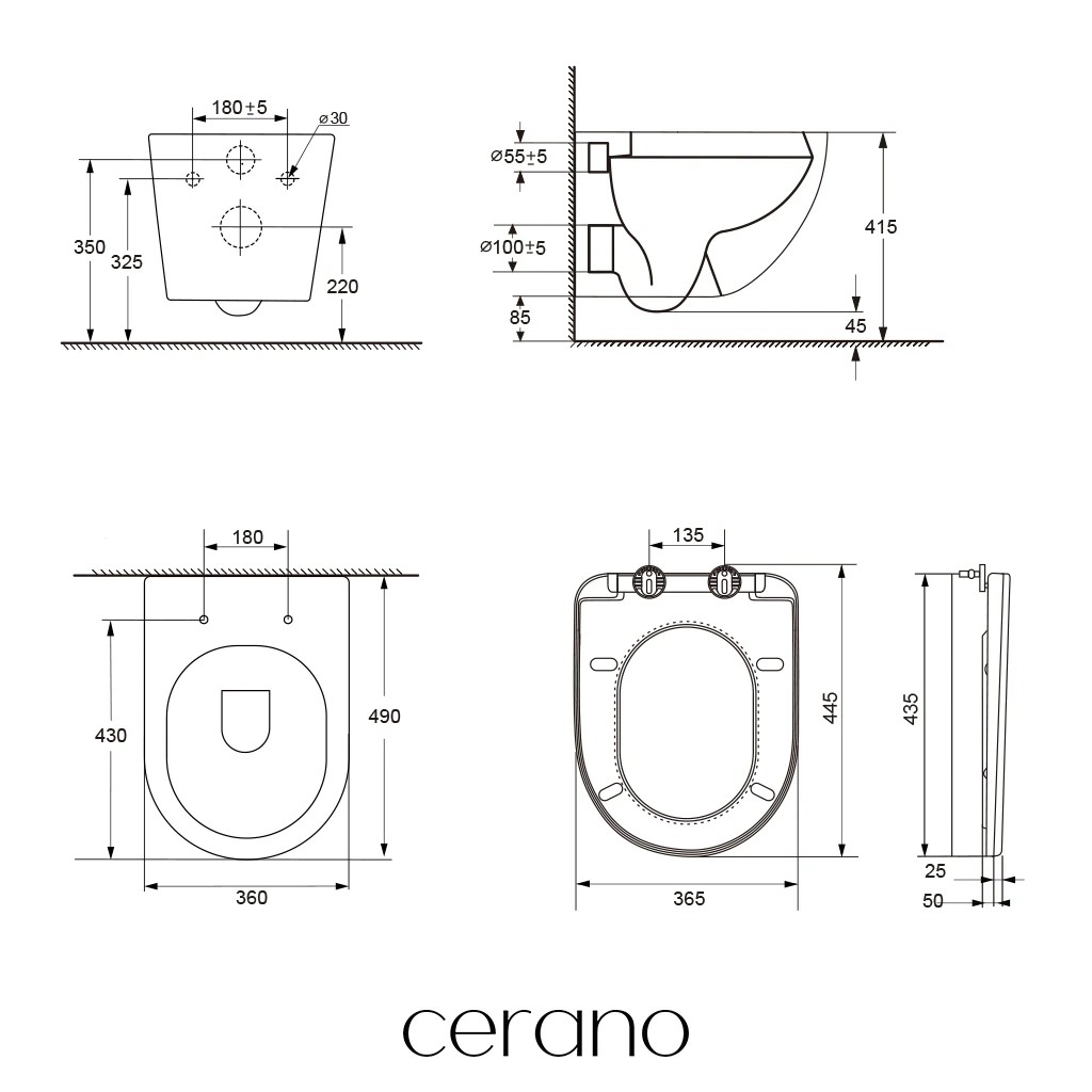 Závěsné WC mísy Cerano se snadno montují a díky standartní rozteči uchycení ,jsou kompatibilní s moduly Cerano ,tak i od značek jako Geberit, Grohe, Alcadrain , Jika, Tece aj.