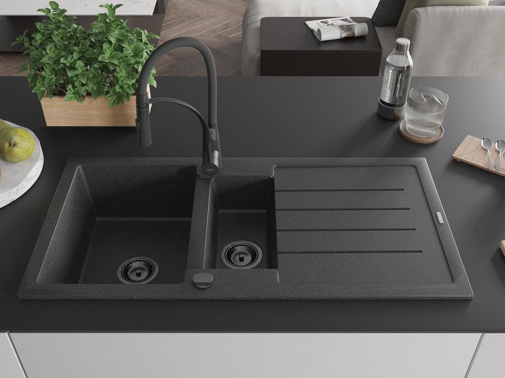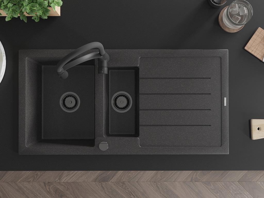 MEXEN - Andres granitový dřez s odkapávačem včetně baterie Aster, černá kropenatá 6515-76-73450-70-B