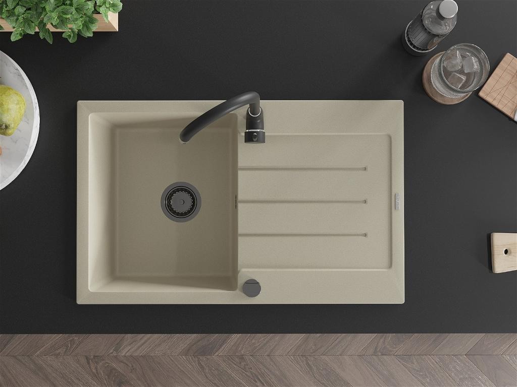 MEXEN - Bruno granitový dřez s odkapávačem včetně baterie Telma, béžová 6513-69-670200-70