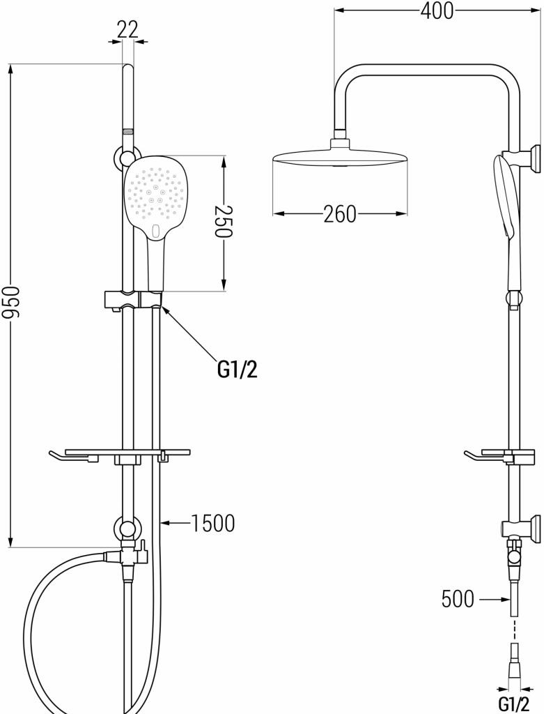 Velikost dešťové sprchy: 260x230 mm
