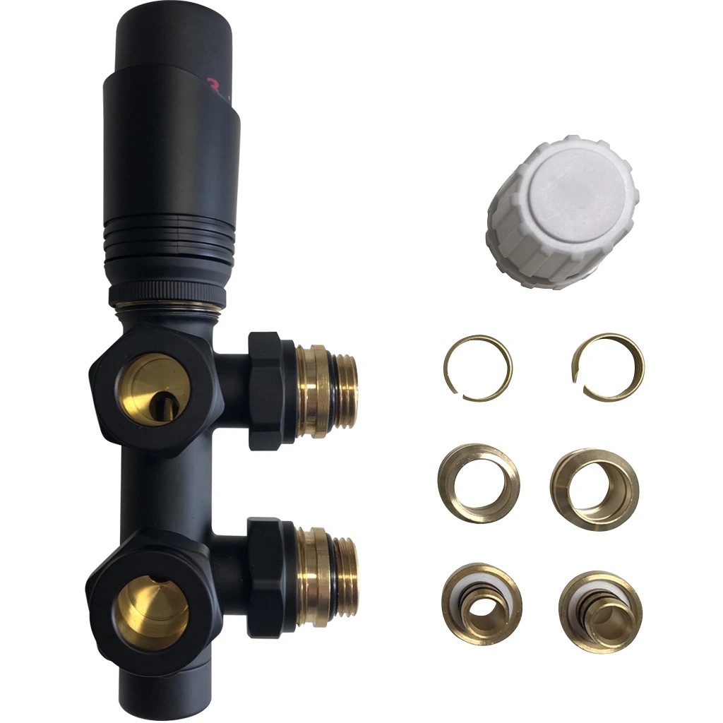 Připojovací sada radiátorového ventilu s termostatickou hlavicí - středové připojení 50mm - černá matná - 433356