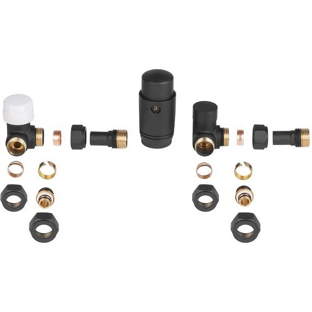 Připojovací sada radiátorových ventilů s termostatickou hlavicí - rohová - černá matná