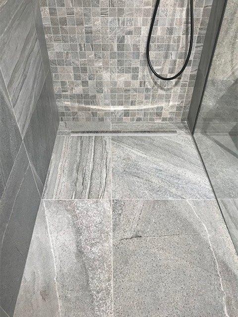 - Spádovací lišta pomáhá zakrýt přechod vzniklý během výstavby sprchového koutu mezi spádovanou a nespádovanou částí podlahy.