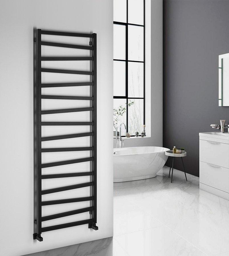 Otopné těleso s různoběžnými středovými trubkami podtrhne design koupelny. Možná kombinace ústředního a elektrického vytápění. V nabídce v barvách bílá, strukturální antracit a černá mat.