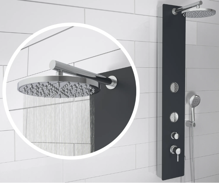 Sprchový panel v antracitovém provedení je ideální volbou pro ty, kteří hledají kombinaci moderního designu, funkčnosti a relaxace v jednom elegantním systému.